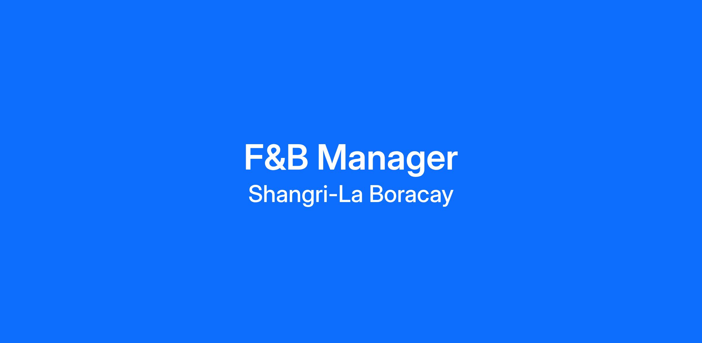 Manage all food and beverage operations at this beachfront luxury resort in Boracay. Oversee restaurants, bars, beach dining, and banqueting. Strong team leadership and luxury resort background required. Accommodation provided.