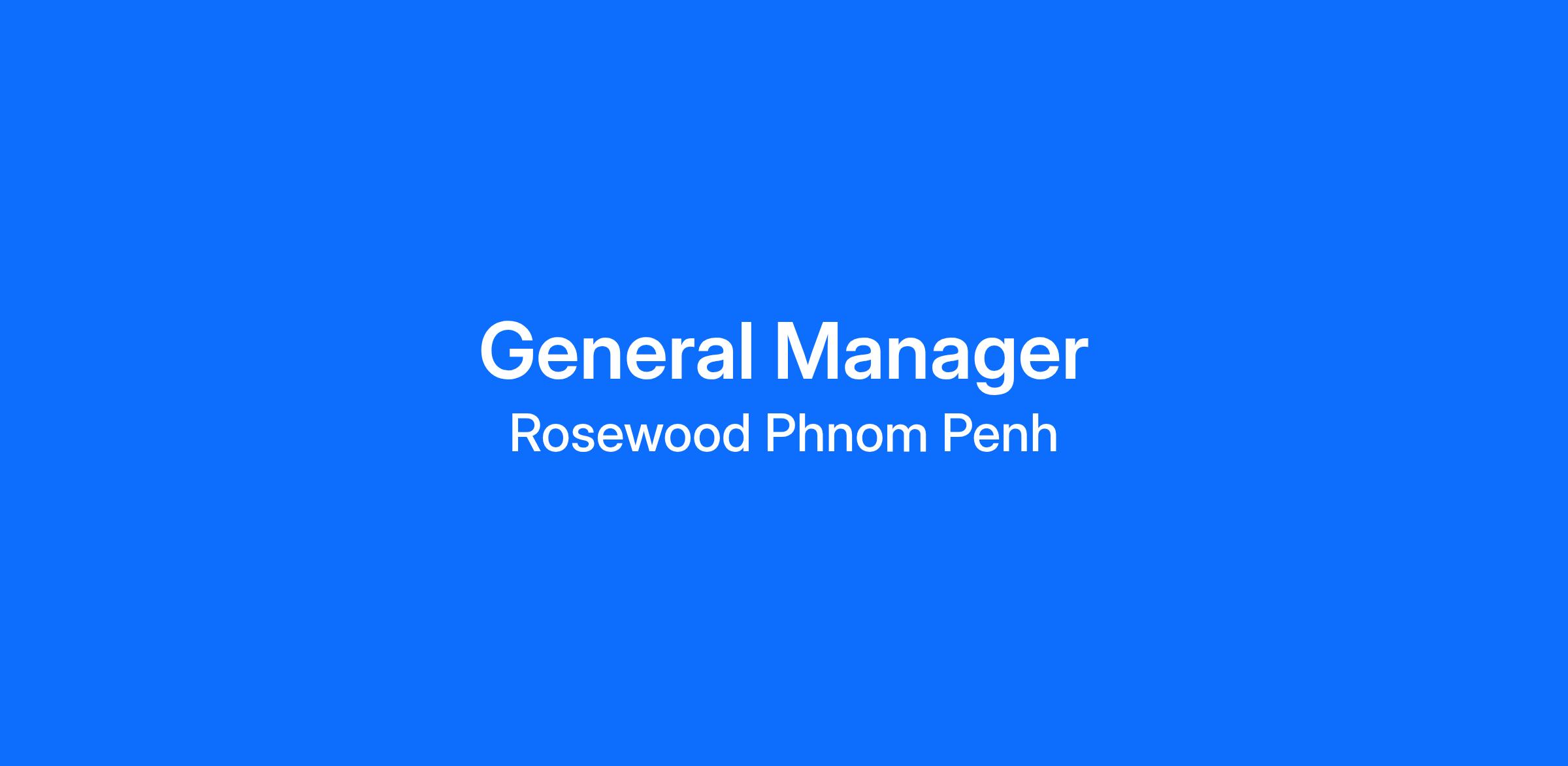 General Manager – Rosewood Phnom Penh