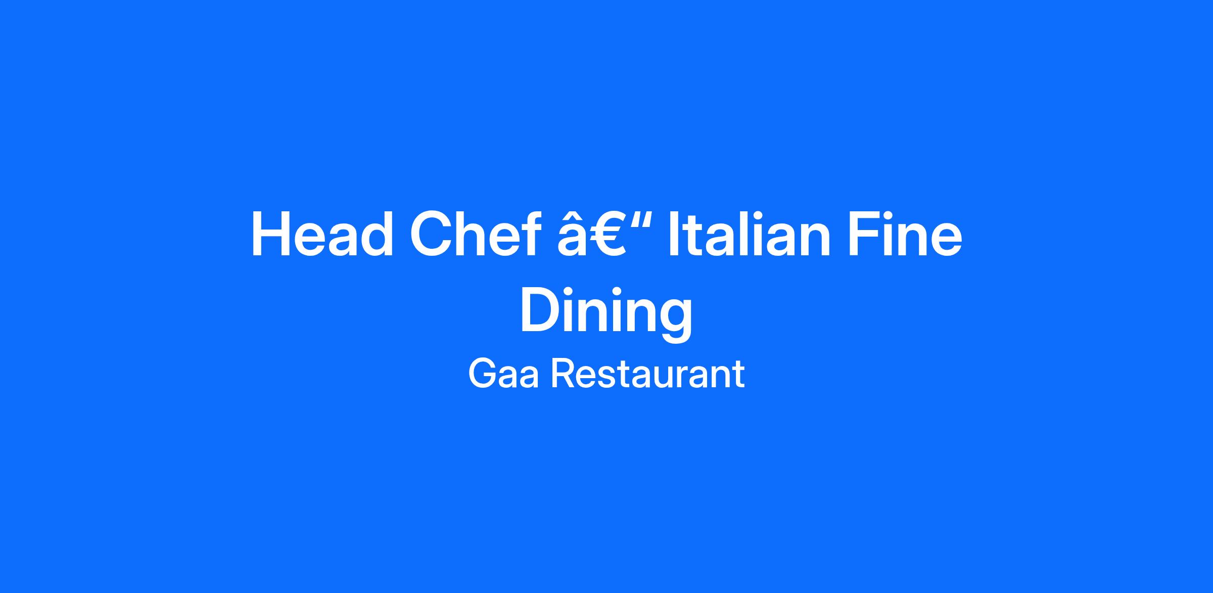 World-renowned fine dining group expanding its Bangkok presence seeks an Italian-trained Head Chef to open and lead a new concept. Michelin experience preferred. Competitive package with housing allowance.