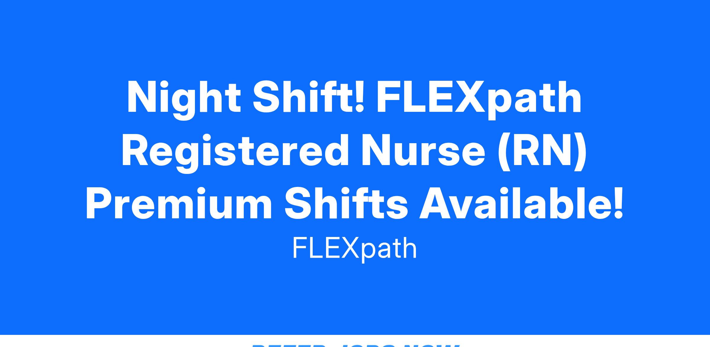 Night Shift! FLEXpath Registered Nurse (RN) Premium Shifts Available!